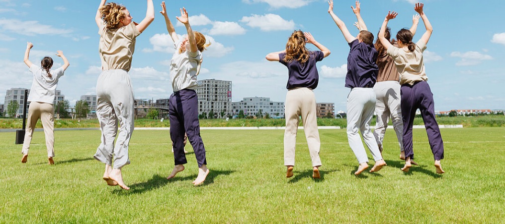 In BUGS, Eric Trottier and the dancers of the Mannheim collective La Trottier Dance developed a production specifically for the natural setting of the BUGA 2023 (Federal Garden Show), experimenting with a utopia of symbiotic sharing of all areas of life through dance.